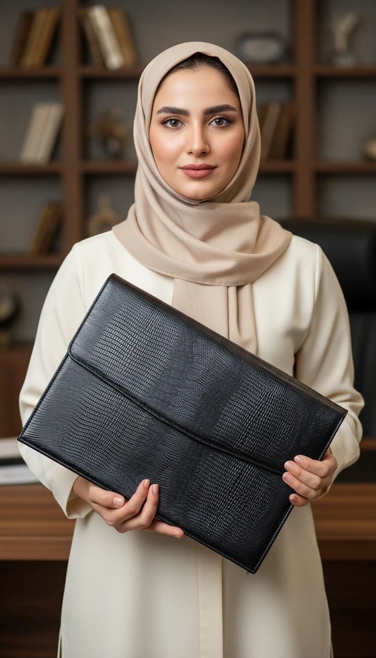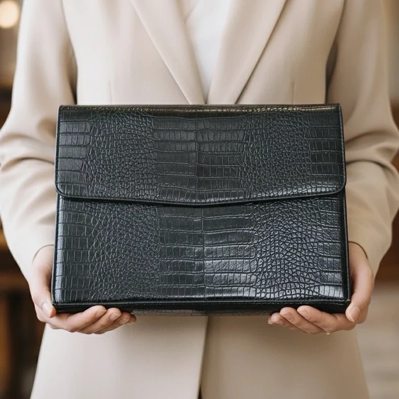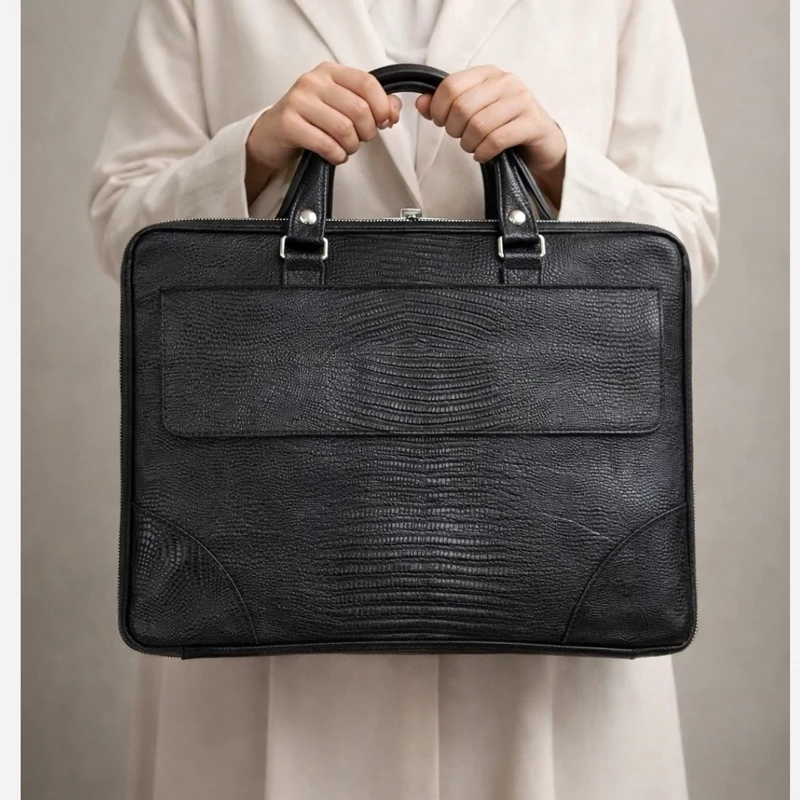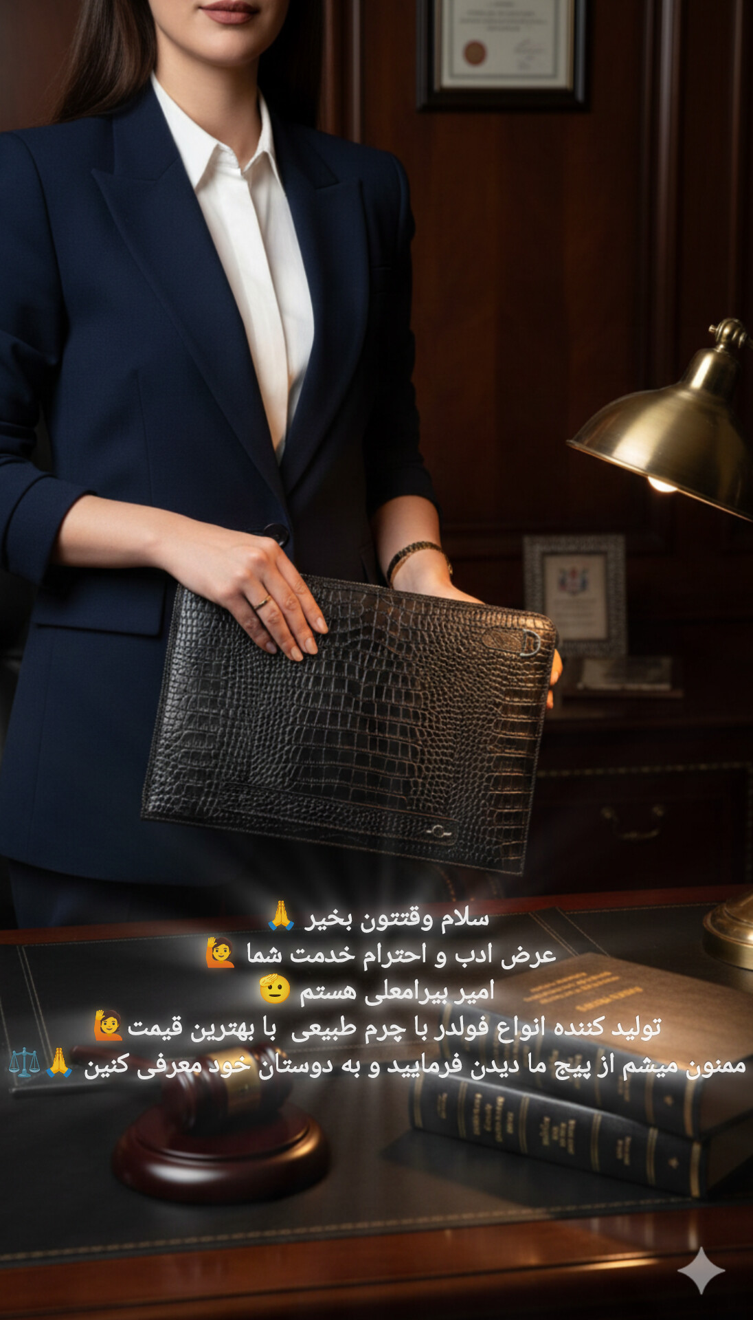 فولدر اداری دسته دار*چرم گاوی لزارد مشکی*مناسب وکلا و مهندسین و...