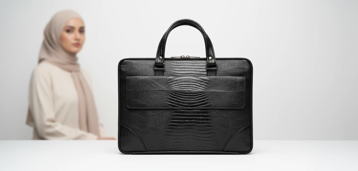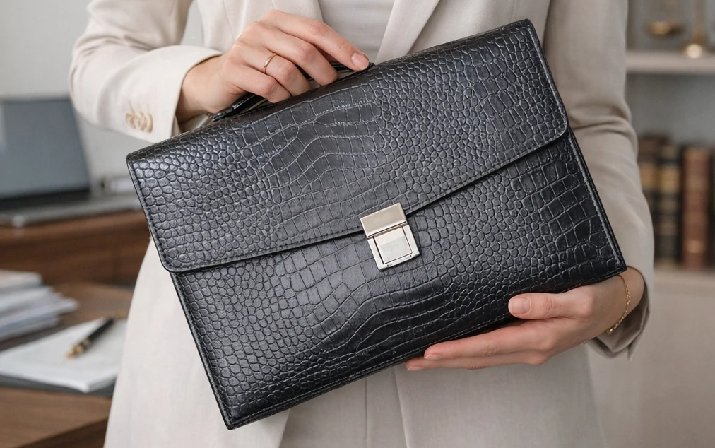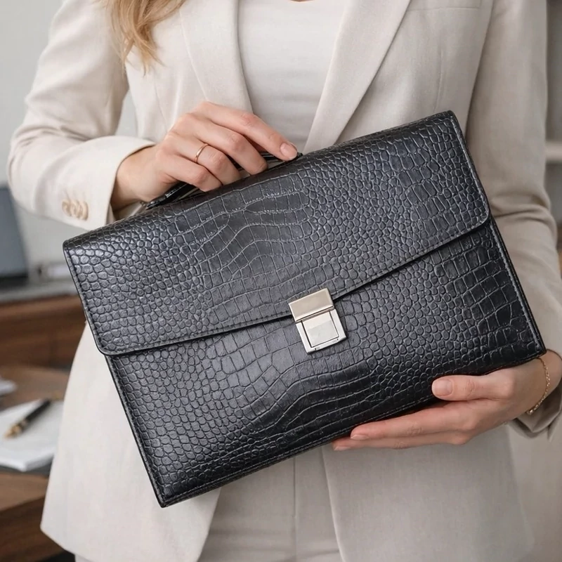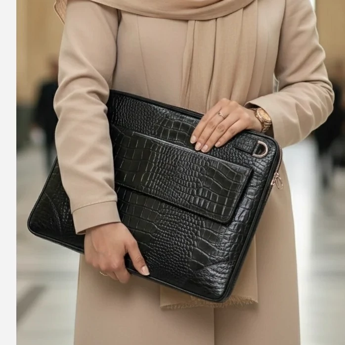 فولدر اداری دسته دار*چرم گاوی لزارد مشکی*مناسب وکلا و مهندسین و...
