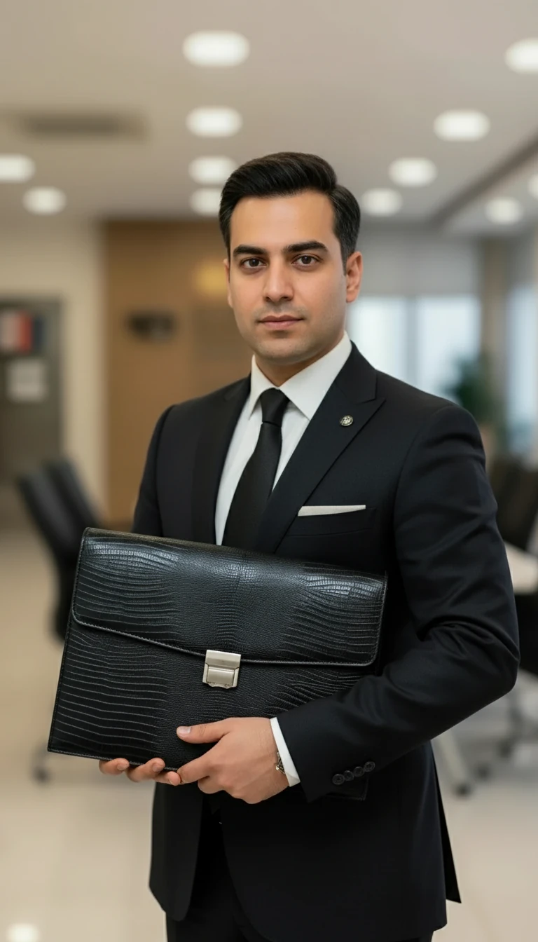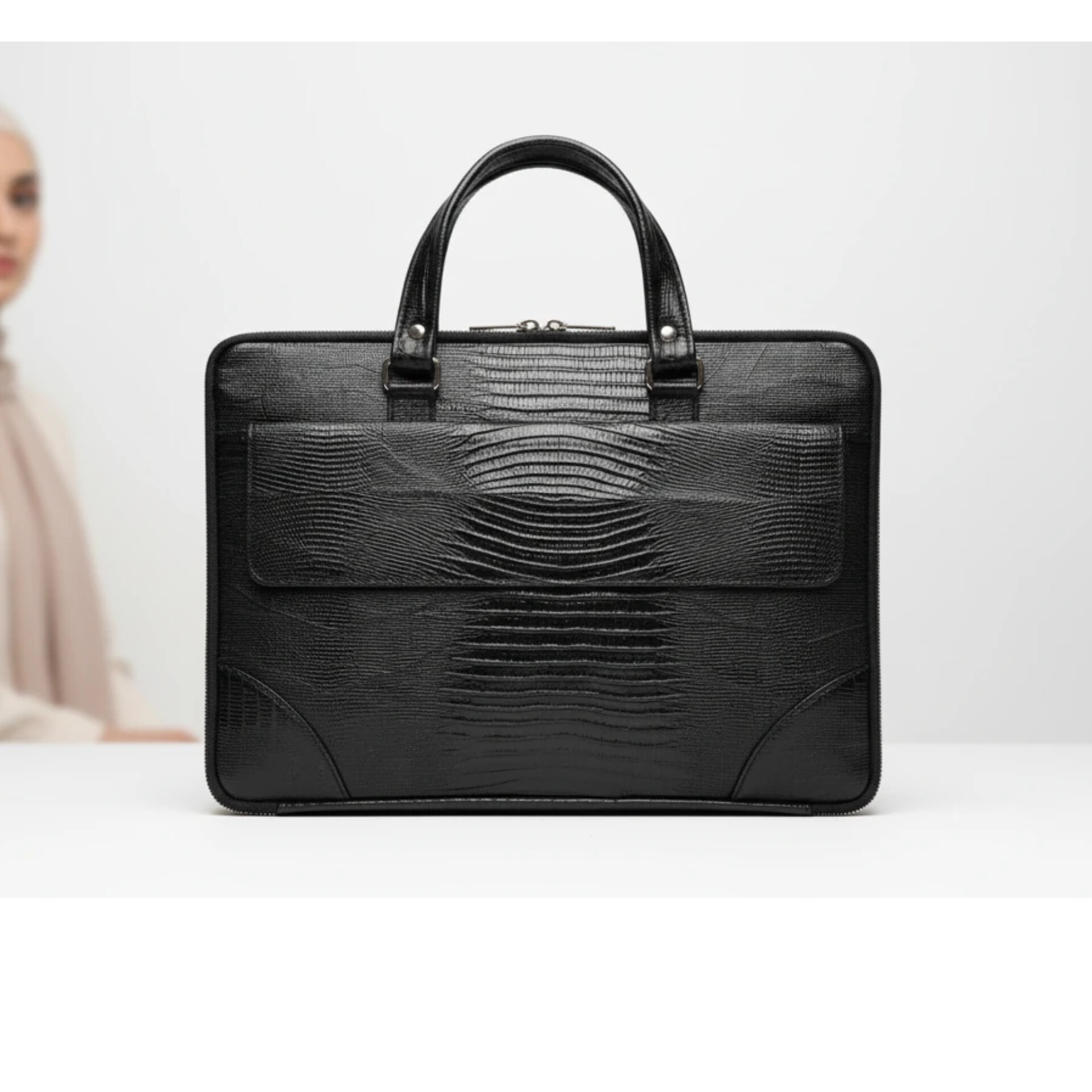 فولدر اداری دسته دار*چرم گاوی لزارد مشکی*مناسب وکلا و مهندسین و...